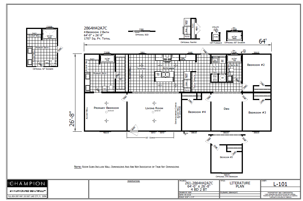 This home features wall panel with batten strips, vinyl flooring throughout and overhead ducts. The Embrace series features standard upgardes like 42 inch cabinets, accent walls and trim, and upgraded front door.