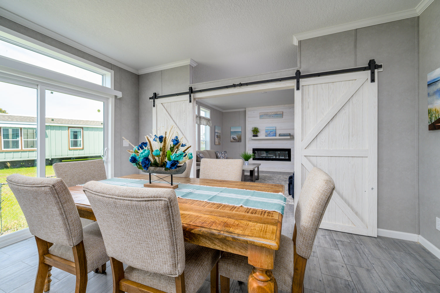 The HD series drywall finish is a horizontal drywall with chair rail and battens in corner. The HD series is packaged with options that are typically upgrades with other manufactures however they are standard with Townhomes.