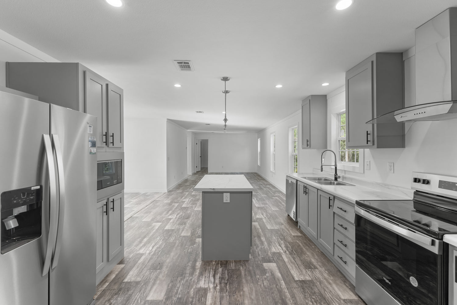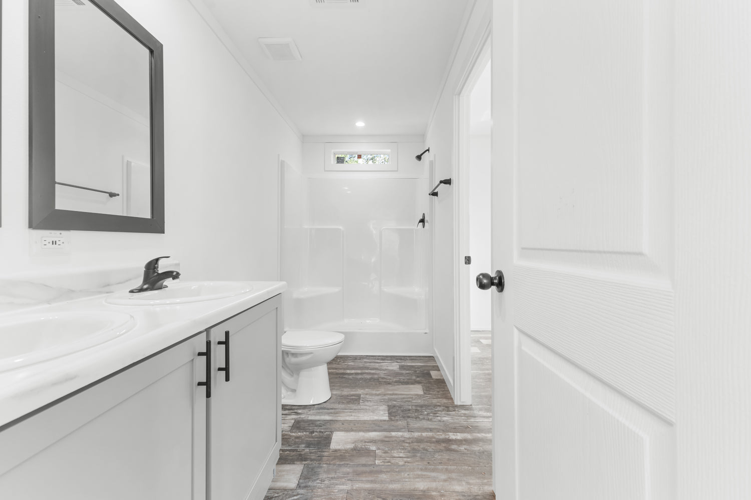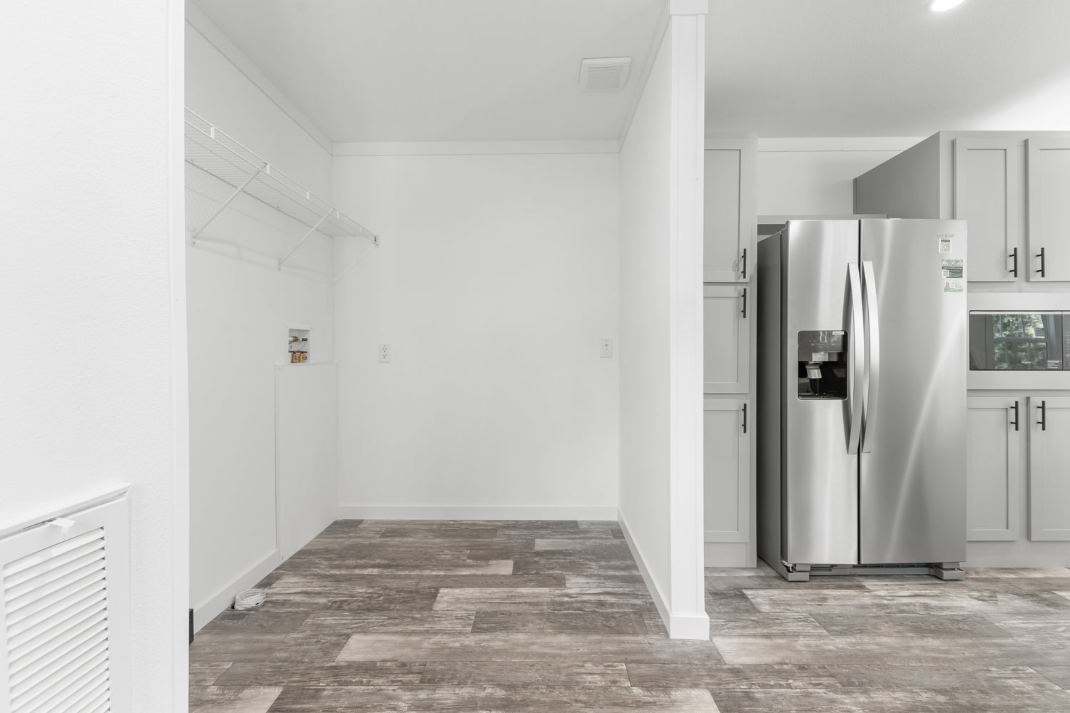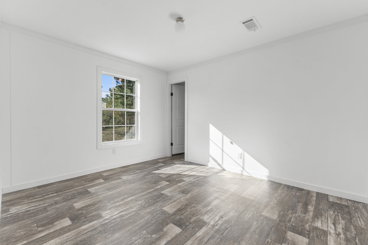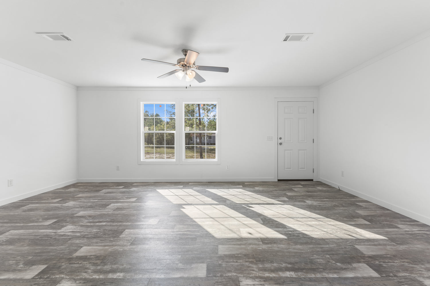 This home features drywall with flat block crown and base. Some standard features include vinyl flooring throughout and overhead ducts.