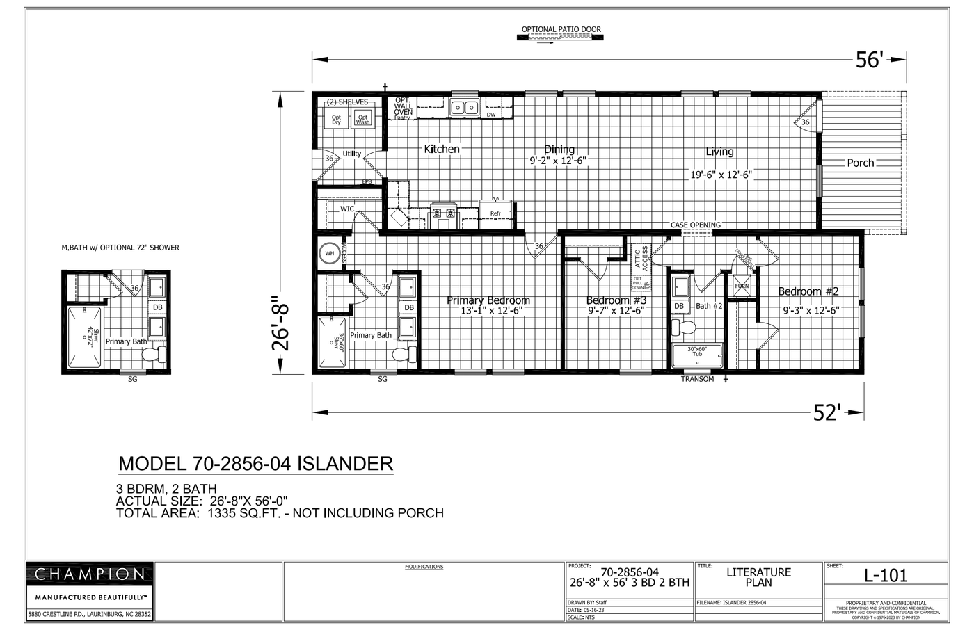 This is a modular home is made in Laurinburg, NC. Some of the standard modular features include 9 ft - 2 x 6 exterior side walls, 8 ft interior doors, and wood cabinets with wood stiles.