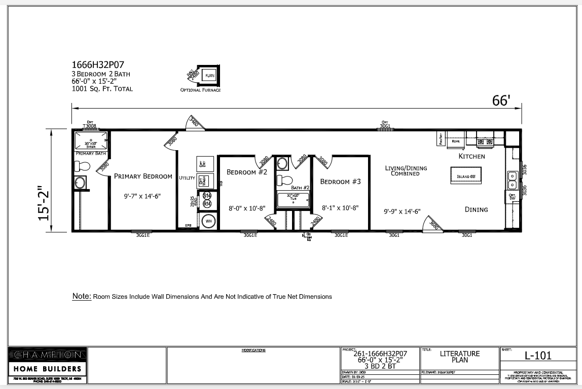 This is the standard floorplan for this manufactured home. Please contact us to confirm if floorplan modifications are available.