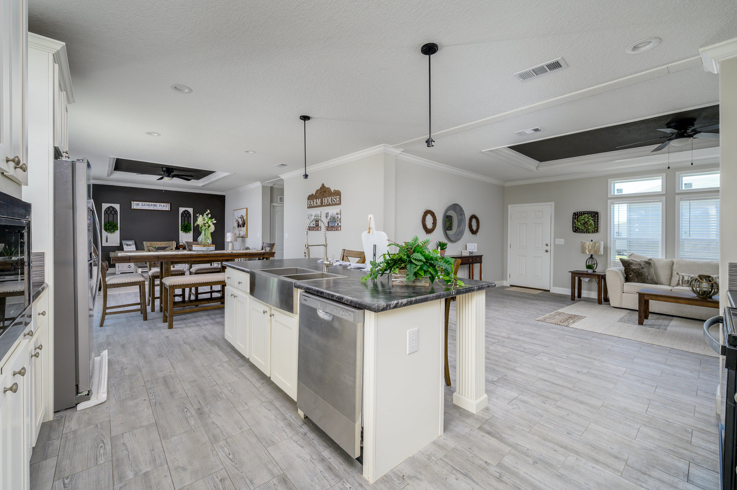 The Rebirth series drywall finish is fully taped and textured drywall with no batten strips. The Rebirth series is packaged with options that are typically upgrades with other manufactures however they are standard with Townhomes.